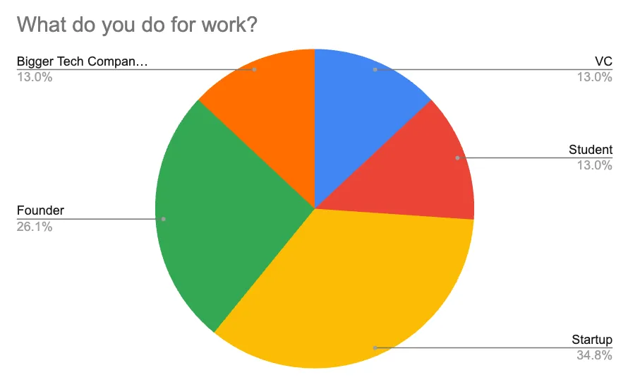 尽管有这么多人在推特上发声,但真正新颖的AI演示和原创思想仍然不足。人们不知道可能的事情,甚至不知道该构建什么。即使在Twitter上,也没有足够一致的创业者或创始人可以密切关注。(>50%的受访者没有提到谁在AI领域做得最有趣)。这是你开始构建和撰写新想法的信号 🙂